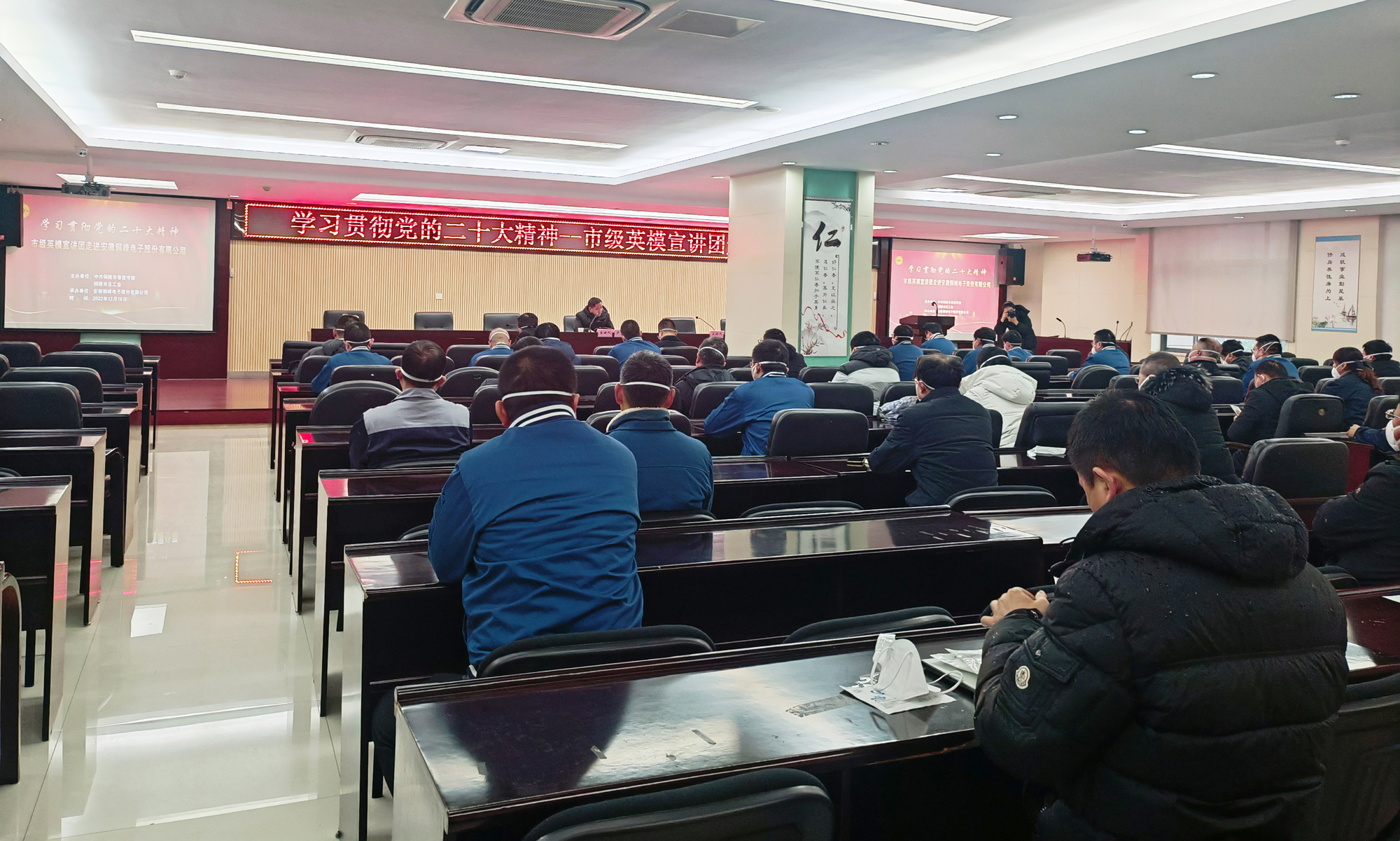 為深入學習宣傳貫徹黨的二十大精神,大力弘揚勞模精神、勞動精神、工匠精神,推動黨的創(chuàng)新理論深入人心、落地生根,12月16日下午,由市委宣傳部、市總工會主辦、公司承辦的“學習貫徹黨的二十大精神--市級英模宣講團走進銅峰電子”宣講報告會在公司辦公樓二樓職教室舉行。會上邀請全國五一勞動獎章獲得者、銅陵金隆銅業(yè)公司技術主管盧鵬勞模作黨的二十大精神專題宣講。公司黨委書記、董事長黃明強等公司黨政領導班子成員參加宣講報告會,公司各黨支部書記、分工會主席和先進模范、新黨員、入黨積極分子、群眾代表等聆聽了報告。宣講報告會由公司黨委副書記潘世宇主持。