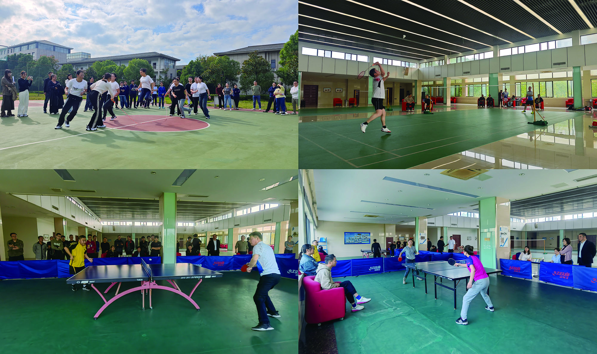 籃球、拔河、十人八字跳繩比賽項(xiàng)目中,隊(duì)員們團(tuán)結(jié)協(xié)作,配合默契,奮勇拼搏。乒、羽比賽項(xiàng)目中,運(yùn)動(dòng)員們展現(xiàn)技藝,“乒”出風(fēng)采、誰“羽”爭鋒,盡情享受運(yùn)動(dòng)帶來的快樂。