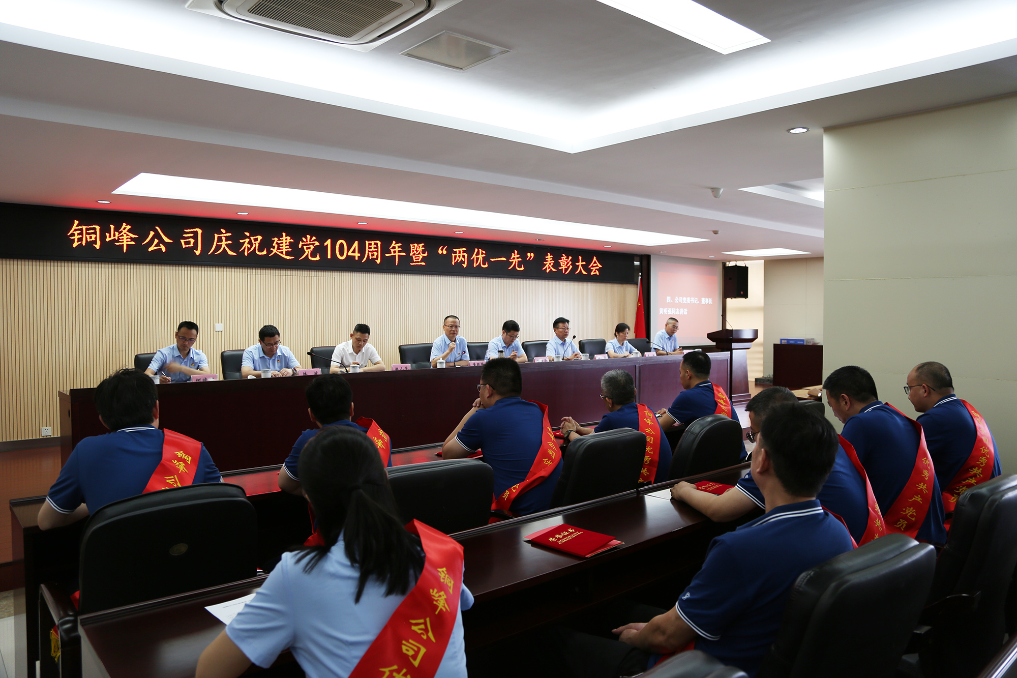 為熱烈慶祝中國共產(chǎn)黨成立104周年,表彰先進(jìn)、樹立榜樣,激勵(lì)廣大黨員干部職工在新征程上展現(xiàn)新作為,6月27日下午,公司在辦公大樓二樓職教室隆重召開慶祝建黨104周年暨“兩優(yōu)一先”表彰大會(huì)。公司黨委書記、董事長黃明強(qiáng)出席大會(huì)并講話,黨委委員、總經(jīng)理鮑俊華宣讀表彰決定,黨委副書記潘世宇主持會(huì)議并就貫徹落實(shí)會(huì)議精神作出部署。公司黨委領(lǐng)導(dǎo)班子成員和公司級(jí)黨員領(lǐng)導(dǎo),紀(jì)委委員,各黨(總)支部書記、委員,“兩優(yōu)一先”表彰對象、黨員代表、新黨員、入黨積極分子代表等參加會(huì)議。