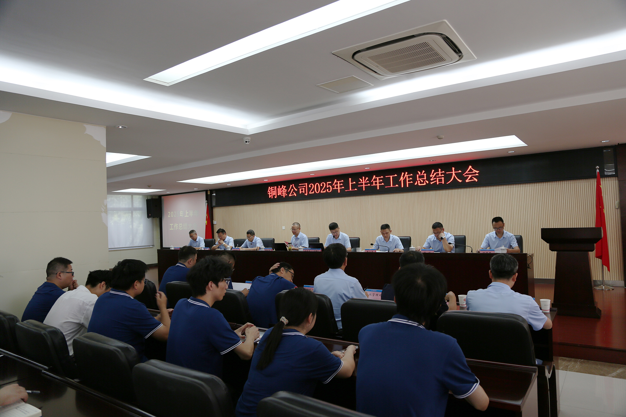 8月8日下午,公司在辦公樓二樓職教室隆重召開2025年上半年工作總結(jié)大會。公司黨政領(lǐng)導(dǎo)班子成員、各生產(chǎn)經(jīng)營單位車間主任和職能部門主管級以上人員、部分職工代表和新進(jìn)大學(xué)生代表等參加會議。會議認(rèn)真復(fù)盤上半年運(yùn)營成果,深入分析當(dāng)前經(jīng)營形勢,精心謀劃下半年重點(diǎn)工作。公司黨委書記、董事長黃明強(qiáng)出席會議并作總結(jié)講話,對公司上半年工作進(jìn)行總體分析,對下半年工作提出要求??偨?jīng)理鮑俊華主持會議,并對公司各單位和部門的具體工作進(jìn)行點(diǎn)評。公司各生產(chǎn)單位和相關(guān)職能部門分別匯報(bào)了上半年主要工作及下半年工作計(jì)劃。