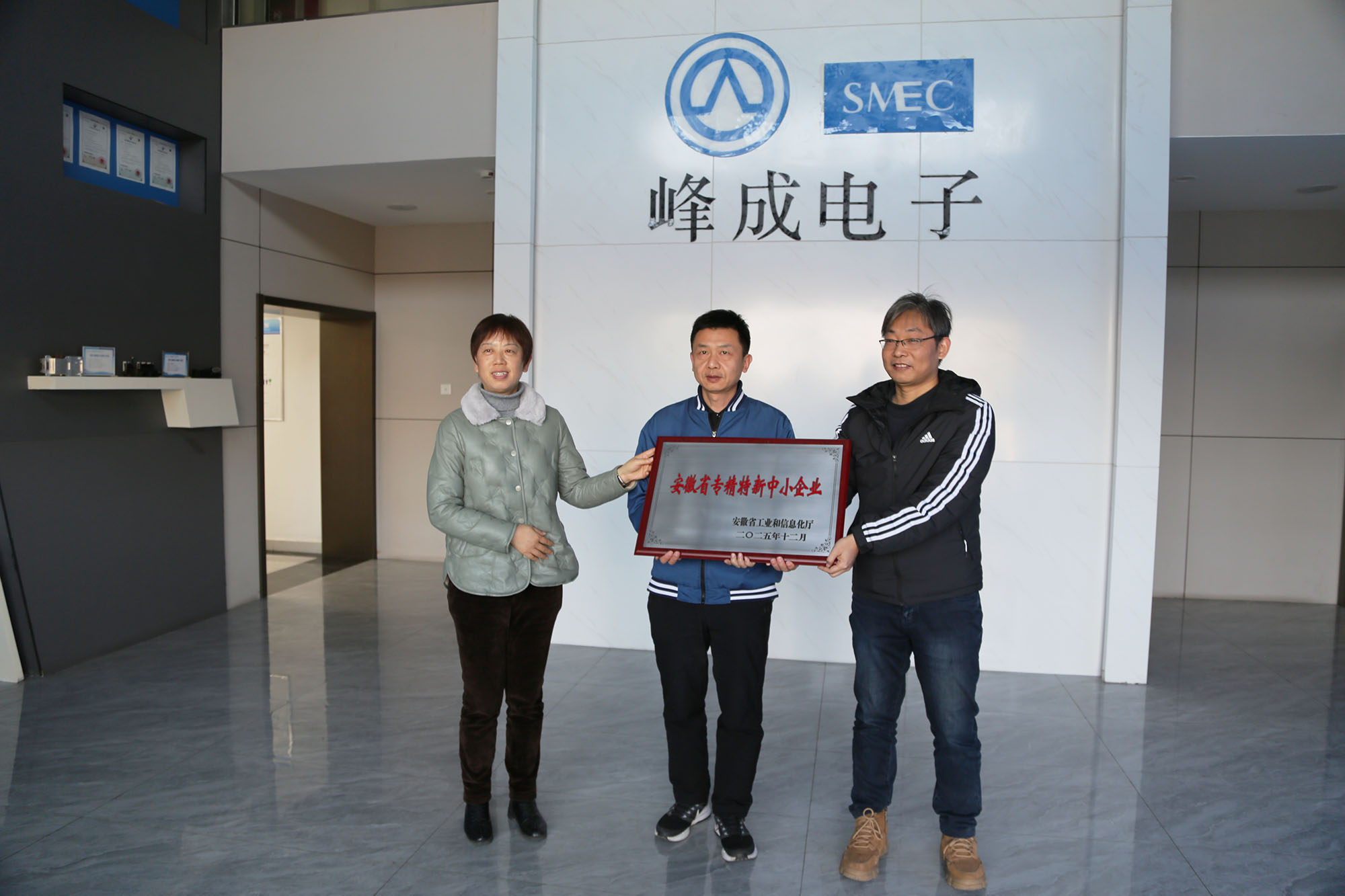 1月15日下午,市中小企業(yè)局副局長丁靜一行來峰成公司走訪調(diào)研,向峰成公司授予省專精特新中小企業(yè)榮譽(yù)牌匾,了解企業(yè)經(jīng)營發(fā)展、科技創(chuàng)新、品牌建設(shè)等情況,并宣傳相關(guān)惠企政策。